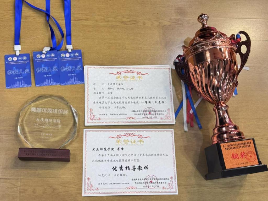 我校机电工程学院高度重视此项赛事,精心组织,经过院内严格选拔,派出多支实力强劲的队伍参赛。机电学子凭借扎实的理论功底、出色的创新设计能力和精湛的实践操作水平,取得了创意赛一等奖1项、二等奖7项的骄人战绩。其中一支队伍参加路演决赛,通过不断精进项目方案和改进实验,最终获得路演铜奖的好成绩。我校也被授予第十三届全国大学生光电设计竞赛(东北赛区)“竞赛优秀组织奖”。