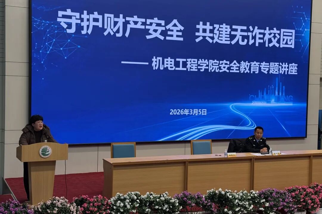 3月5日晚,机电工程学院在铁人讲堂举办“守护财产安全 共建无诈校园”安全教育专题讲座。本次讲座特邀校保卫处处长盖立庆主讲,学院党总支书记闻世宇主持,全体辅导员及大一至大三全体学生参加。