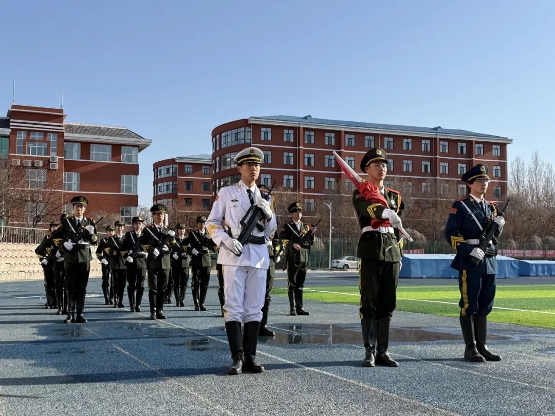 清晨7时,体育场上庄严肃穆。伴随着全体师生合唱《踏着铁人脚步走》,仪式拉开序幕,激昂的旋律激励着大家以铁人精神砥砺前行。国旗护卫队迈着整齐的步伐入场,在雄壮的国歌声中,五星红旗冉冉升起,全体师生肃立行注目礼,表达对祖国的崇高敬意。