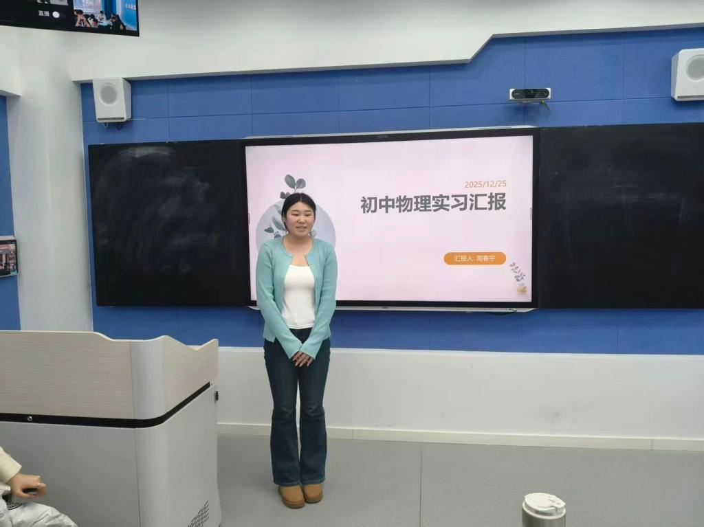 学生总结结束后,物理学专业负责人杨瑞老师进行点评与指导。充分肯定了同学们在实习中的显著进步:从“学生”到“准教师”“准班主任”的角色转变清晰可见,教学组织、课堂把控、班级管理等核心能力均得到有效提升。此外,她还针对实习材料的规范收集、考编备考的重点方向,给出具体指导意见。同时,各位实习指导老师特别强调,“与人相处的能力”是师范生未来职业发展的重要支撑,需在实践中持续锤炼,希望同学们能尽快成为合格的中学物理教师。