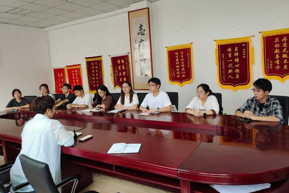 2025年9月3日,大庆师范学院物理学专业7位实习生在大庆市嘉城学校正式开启教育实习活动,大庆市嘉城学校副校长田继英、理综教研组长陈美娇、机电工程学院物理学专业负责人杨瑞、实习带队教师李秀明参加此次会议。此次实习是机电工程学院物理学专业深化“校地协同育人”模式的重要实践,大庆市嘉城学校为实习生搭建了从理论到实践的成长桥梁,彰显了学校对教育人才培育的深切关怀与责任担当。