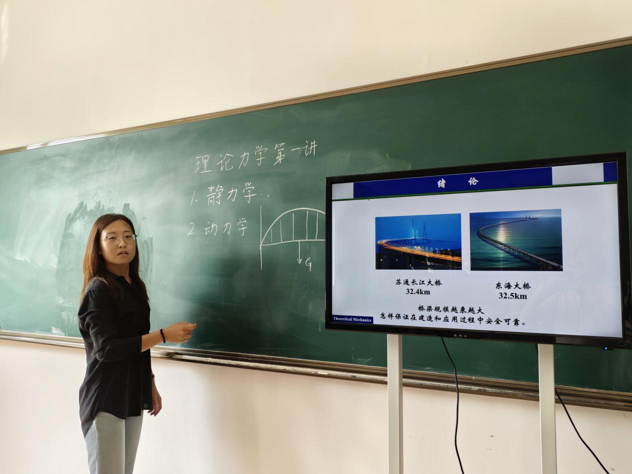 张菊芳老师则聚焦《工程力学》“理论力学第一讲”的教学,以“搭建学科认知框架、激发学习兴趣”为目标,围绕理论力学的研究对象、学习目的及学科意义展开教学。张老师用通俗的语言解释抽象力学的模型,同时通过板书与课件的互补配合,清晰梳理理论力学的知识脉络,不仅可以有效帮助学生快速建立对课程的整体认知,也为学生后续深入学习奠定了扎实的基础,充分展现出对课程内容的深度把控与良好的课堂引导能力。